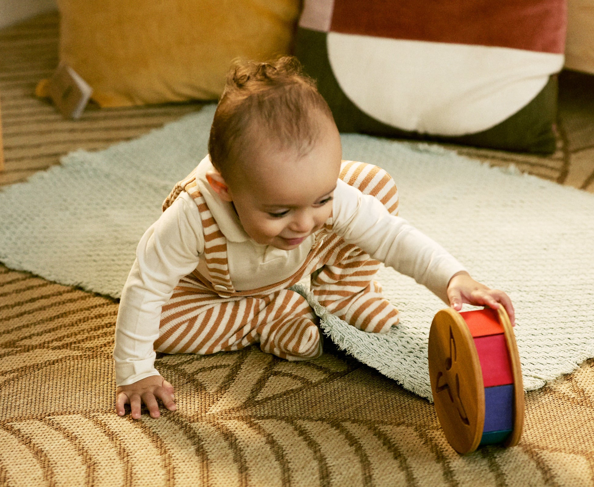 Our 5-6 month box supports babies on the move — crawling, reaching, and beginning to sit. Each piece develops early motor skills and spatial awareness, inviting moments of independent exploration. Repetition isn’t random; it’s your baby mastering their world, one roll, one grasp, one discovery at a time.