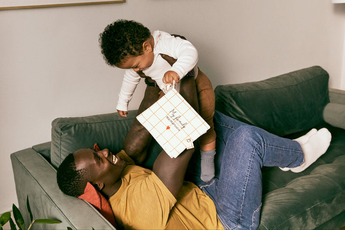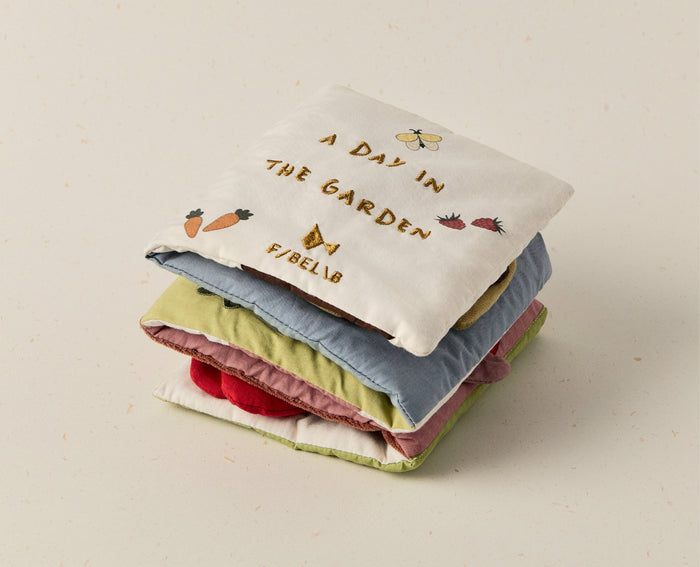 Play deepens at 7-8 months into rhythm and story. A family photo album and first storybook nurture memory, connection, and the wonder of early language. Even before words take shape, your baby listens intently — absorbing sounds, meanings, and the foundations of a rich vocabulary, turning everyday moments into rituals of learning.