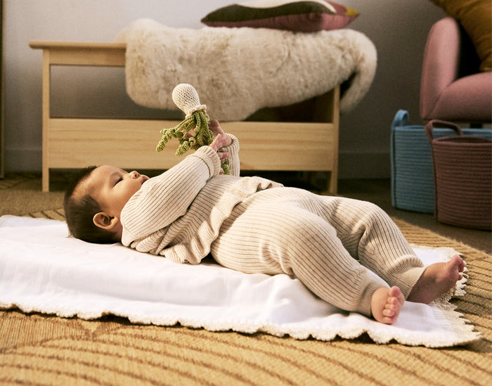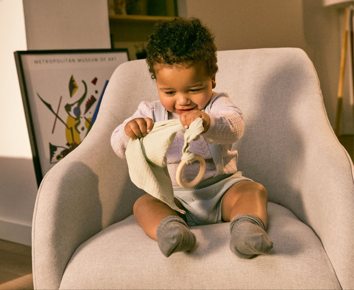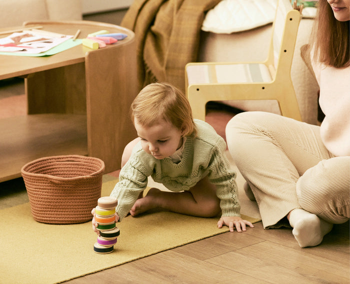 Our 5-6 month box supports babies on the move — crawling, reaching, and beginning to sit. Each piece develops early motor skills and spatial awareness, inviting moments of independent exploration. Repetition isn’t random; it’s your baby mastering their world, one roll, one grasp, one discovery at a time.