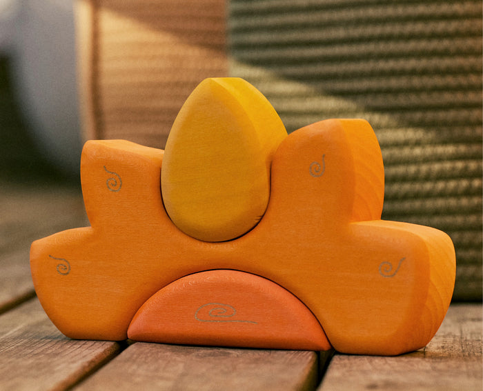 Our 9-10 month box grows with your baby as stacking and balancing skills develop. Each piece nurtures coordination, spatial awareness, and patience, offering quiet moments of mastery. Play silks and the First Waldorf Doll inspire imagination, storytelling, and gentle self-expression, encouraging mindful, unhurried play.