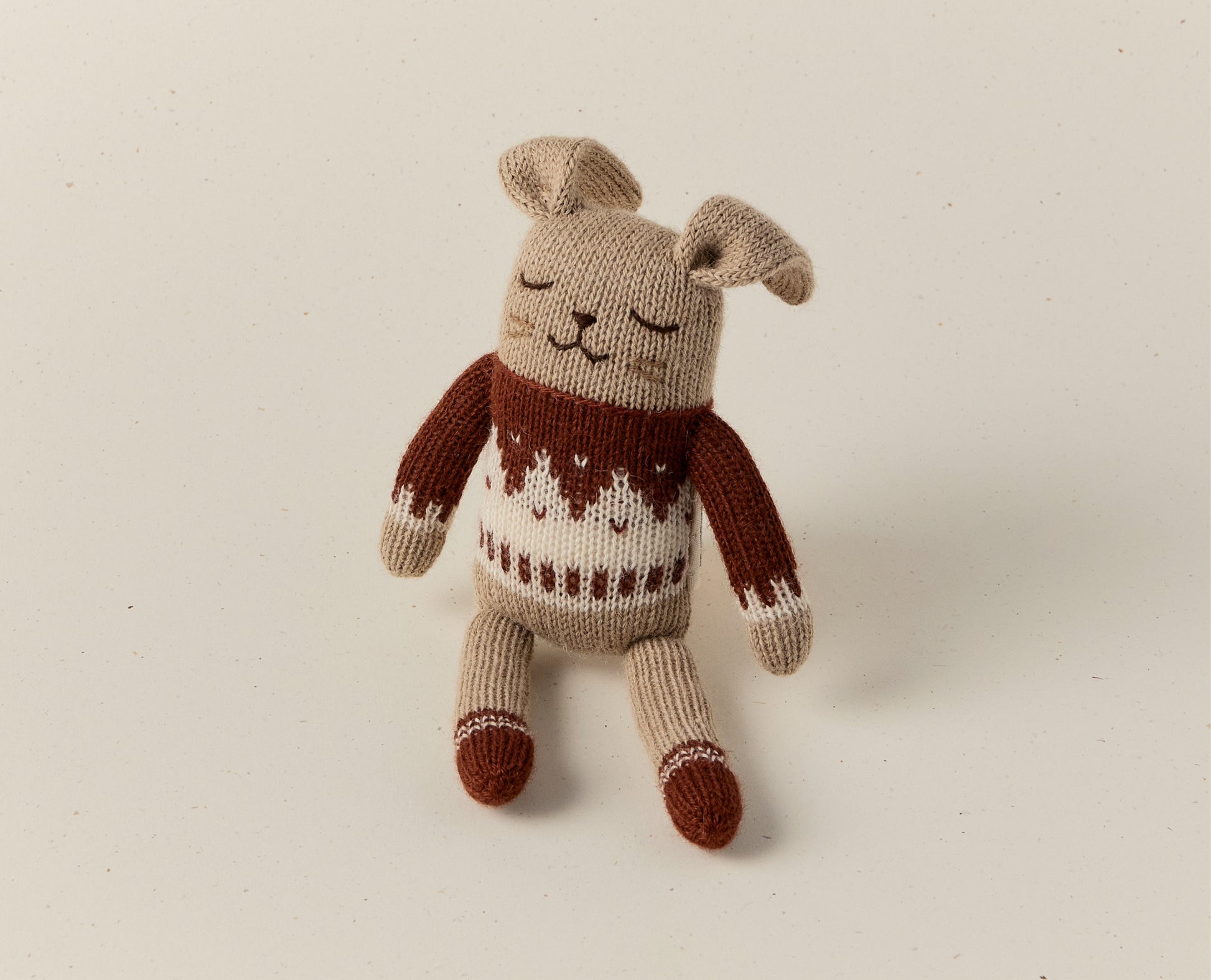 Our limited-edition box features curated, winter-themed pieces inspired by a first snowman and cozy alpaca wool knits, chosen to soothe, support early motor skills, and invite gentle sensory play when the season feels loud. Just as your baby learns without a to-do list — with full concentration and the repetition of small movements — we too can pause during the holiday season.